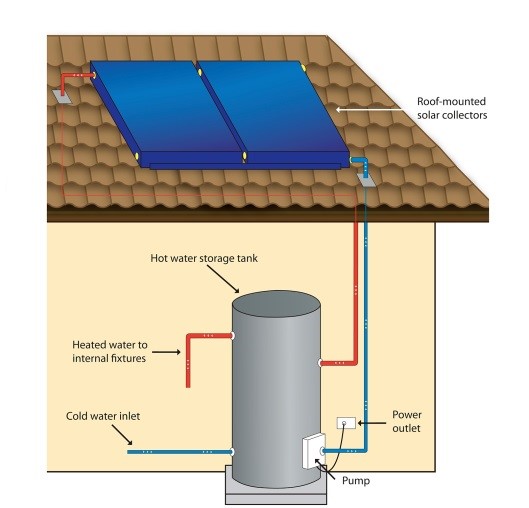 As the water warms in the collectors it becomes buoyant and rises back into the storage tank.